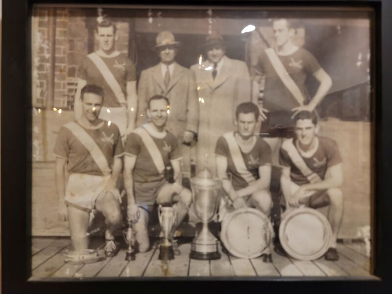 Vesper Boat Club 1950 National Champions Barnes trophy, Philadelphia, Pennsylvania, photograph